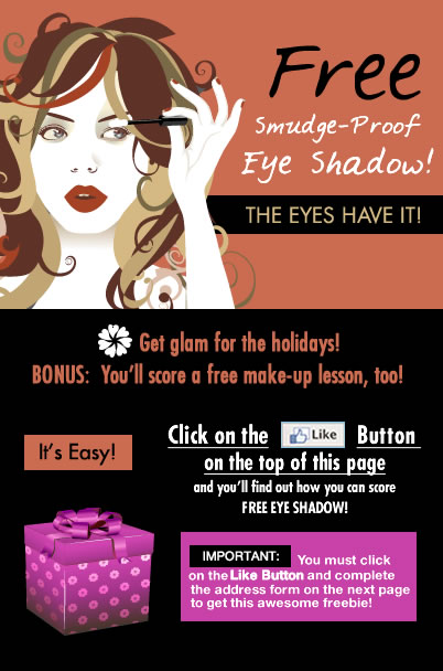 Get Free Smudge Proof Eye Shadow From TeenFreeway. Just like the picture says, click the link, like the page, fill out info!